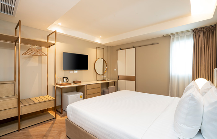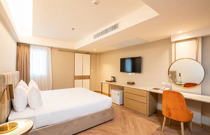If you’re looking for a peaceful and private space to unwind, our 35-sqm Standard Room is the perfect choice. Thoughtfully designed for 2 guests, the room features warm lighting.
