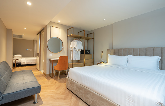 Perfect for groups of friends or families, the 2 Friend & Family room offers 50 sqm of connected comfort. This connecting room setup accommodates up to 4 guests.